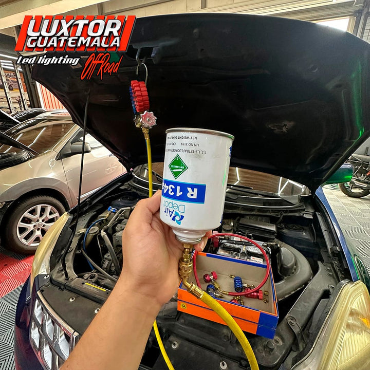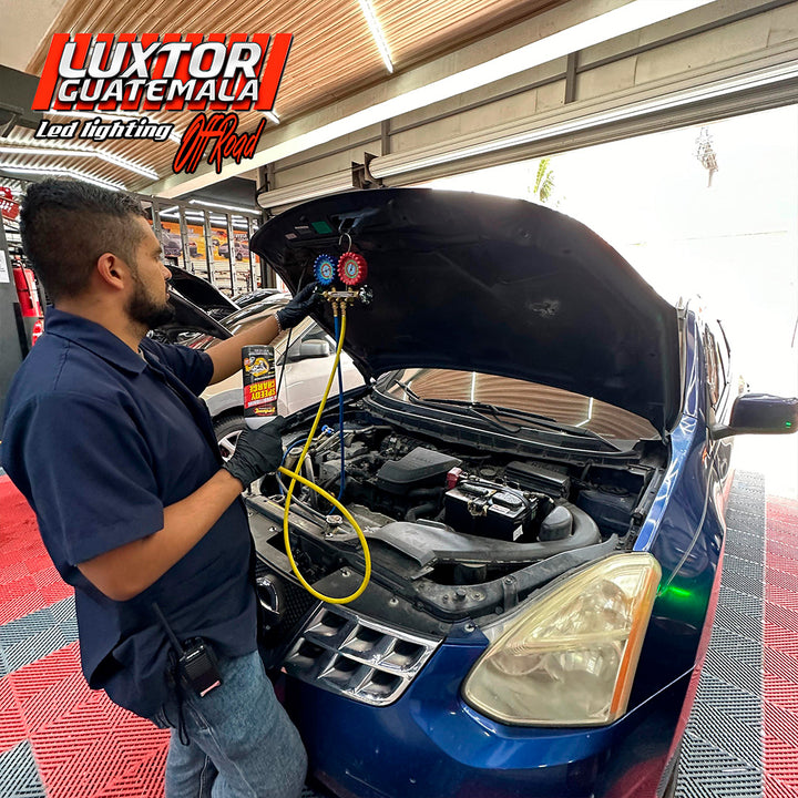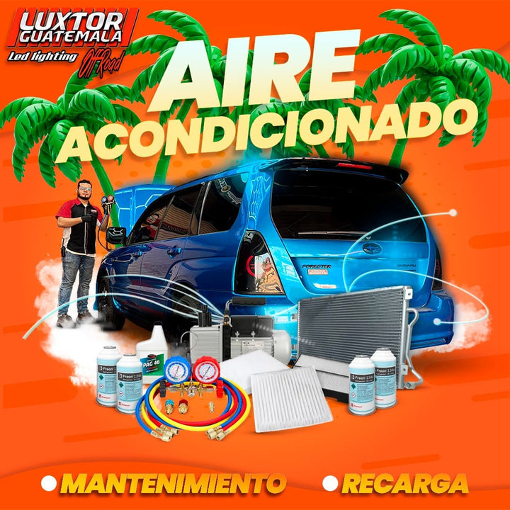 Servicio de aire acondicionado automotriz. Reparación, mantenimiento, recarga de gas y diagnóstico completo. Técnicos especializados, repuestos originales. Viaja fresco y cómodo todo el año. ¡Agenda cita!