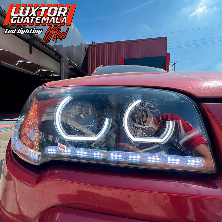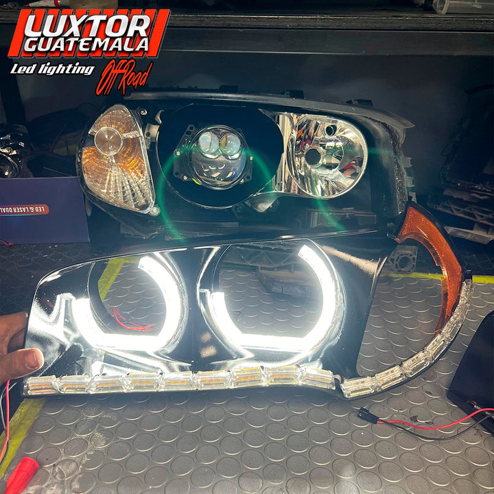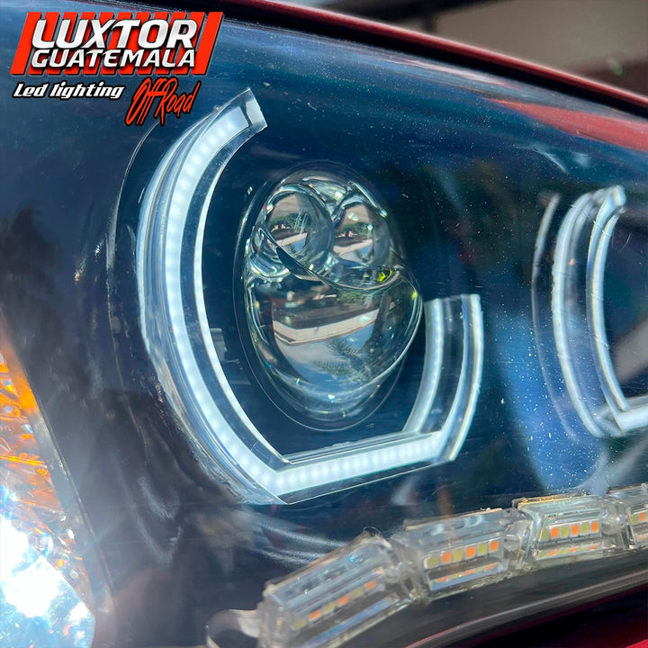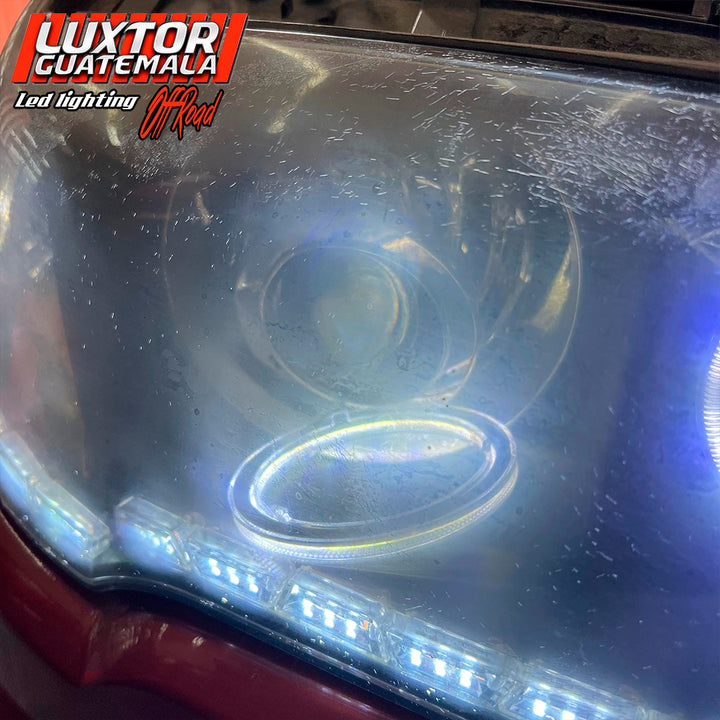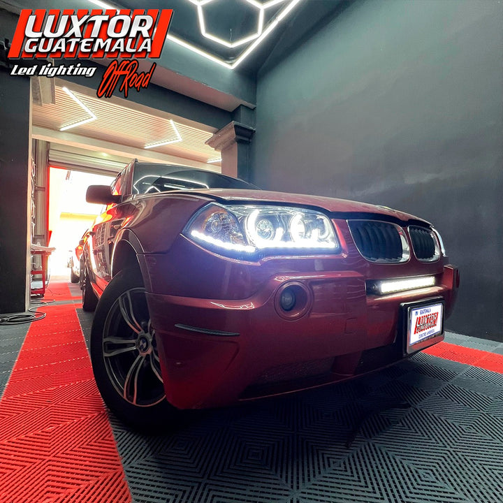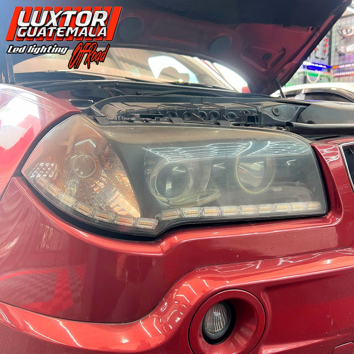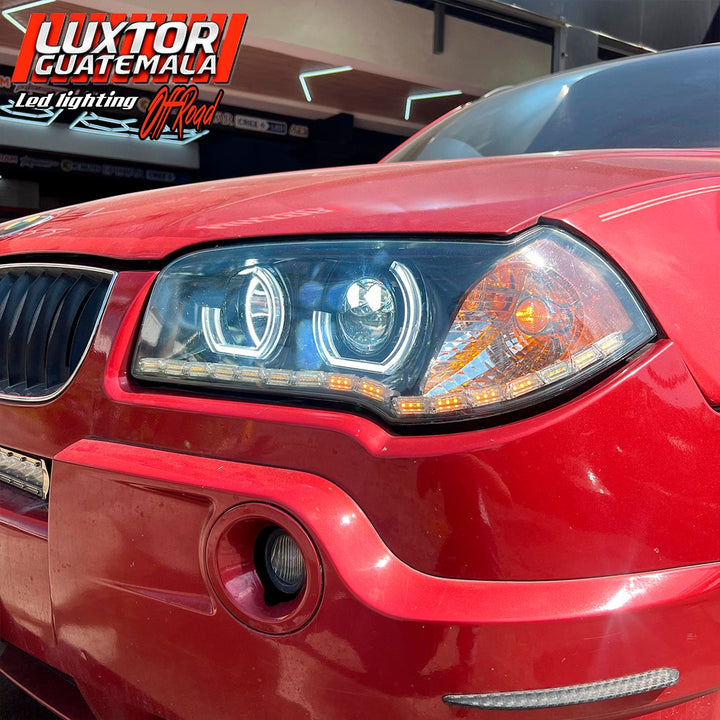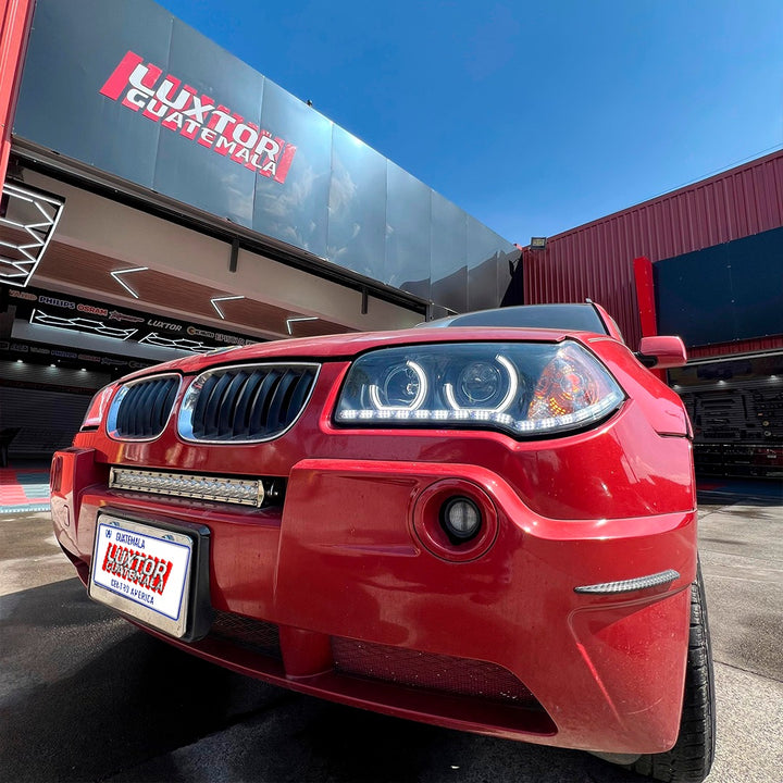 Mejoramos no solamente la apariencia si no tambien la iluminación a otro nivel a esta bmw x3, con un par de aureolas tipo bmw un par de proyectores doble lupa gama Luxtor y un tratamiento químico en sus pantallas quedando como resultado una pieza única.