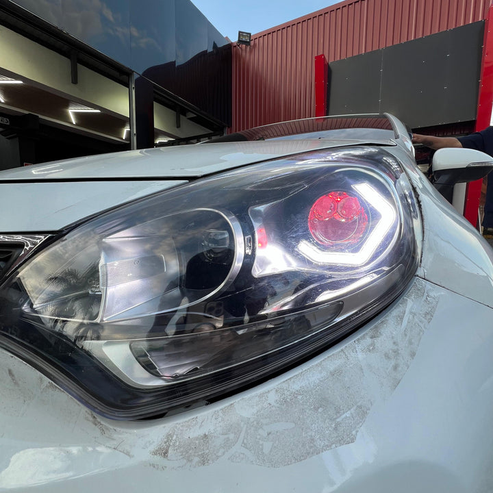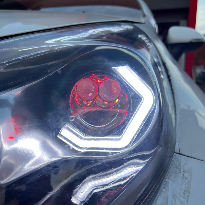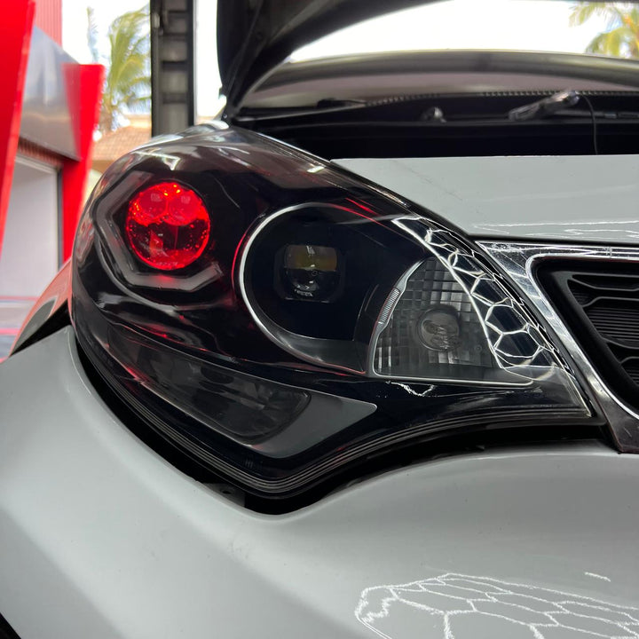 Mejorando totalmente la apariencia de estos silvines con, adaptación de aureolas hexagonales, diseño personalizado de piezas de silvin (KIA RIO) , ojo de demonio rojo además de mejorarle la apariencia de sus silvines con un par de proyectores tri-color y un tratamiento químico premium en pantallas.