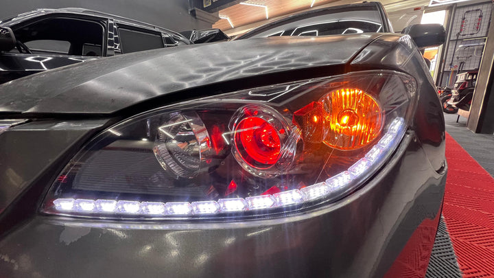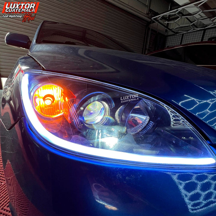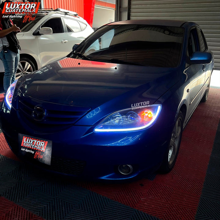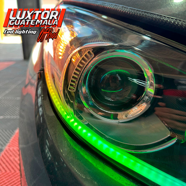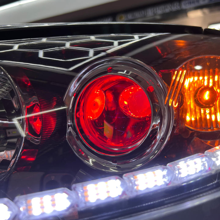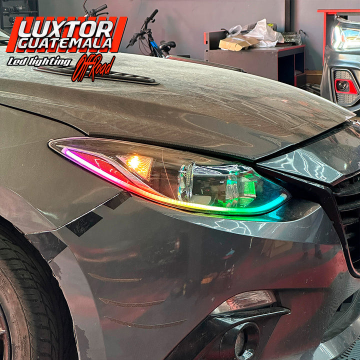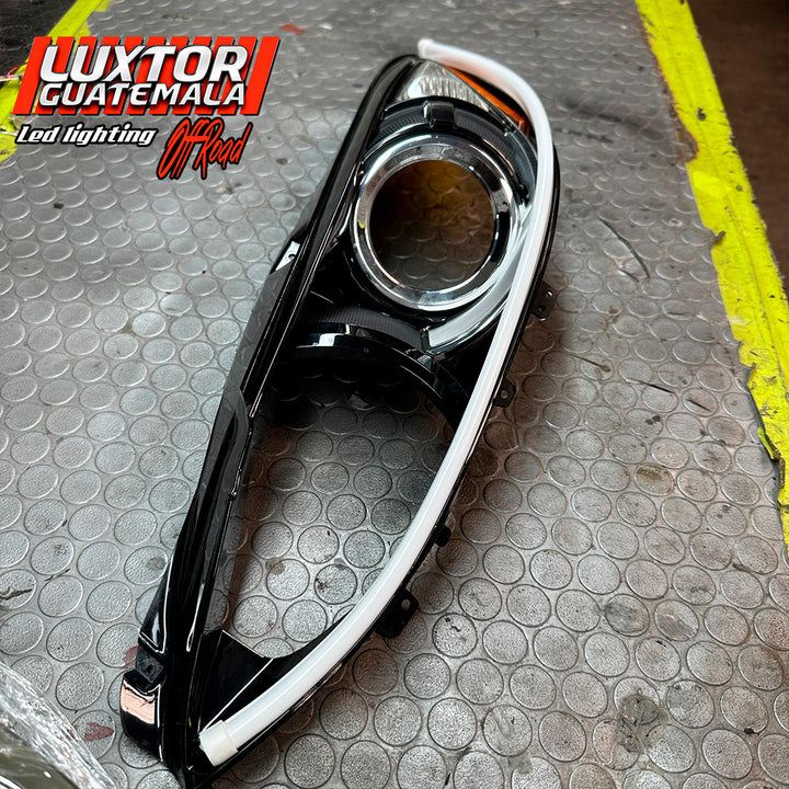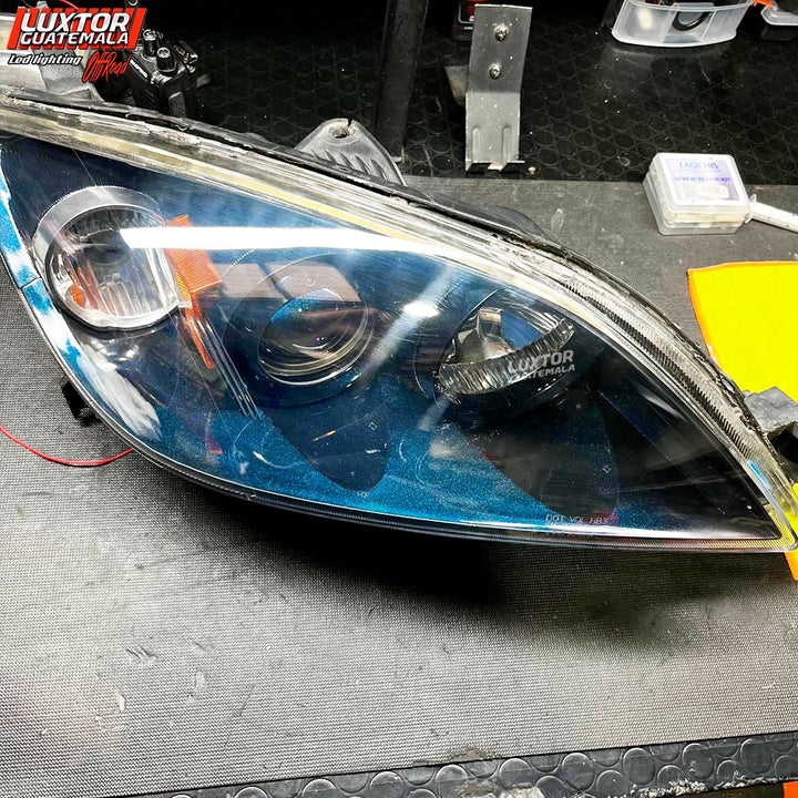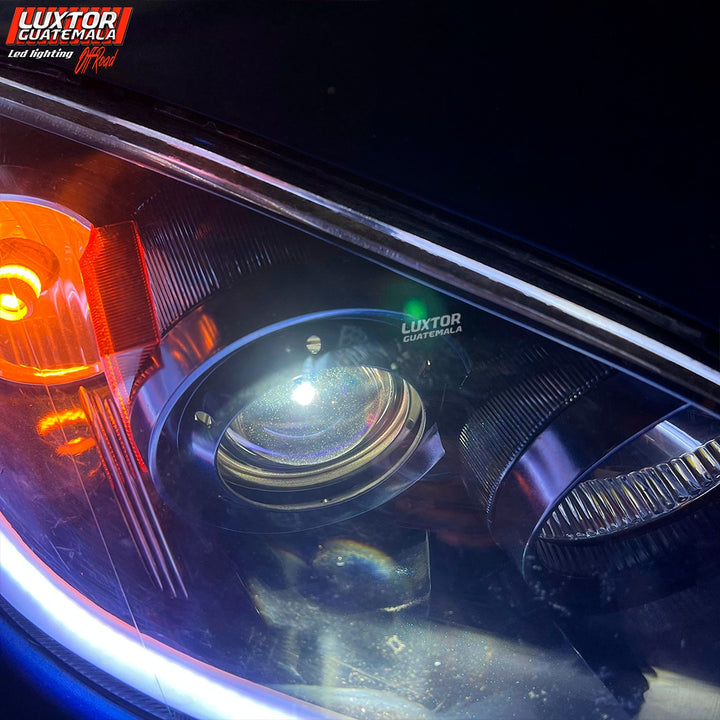 Par de proyectores iron man gama Luxtor, ojo de demonio rojo en luz media, adaptación de tira led tipo Crystal con función de pide vías y un tratamiento químico premium en sus pantallas.