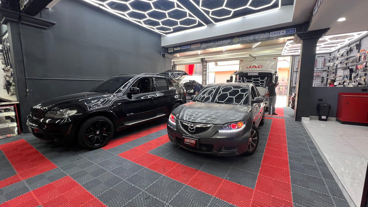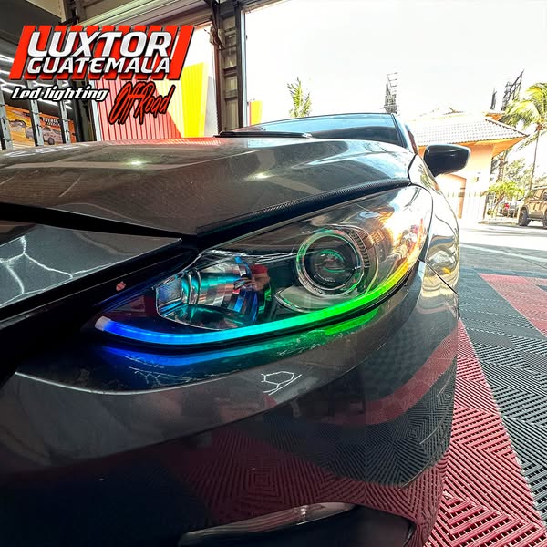 Mejorando la iluminación con un par de proyectores AES tri-color, adaptación de luz media con tira led con función de pide vías además de un blackhousing azul perlado el el cromo para un aspecto único.