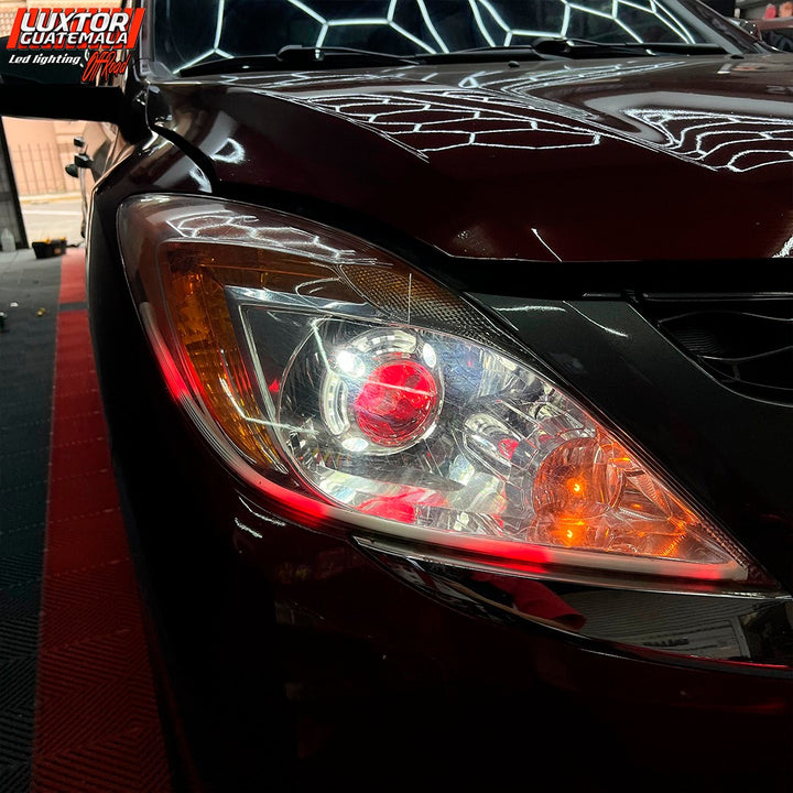 Potenciando estos silvines con una modificación a gusto del cliente con un par de proyectores triple lupa gama Luxtor tira led RGB marca AES controlada por App con función de pidevías, ojo de demonio rojo con función de luz media.