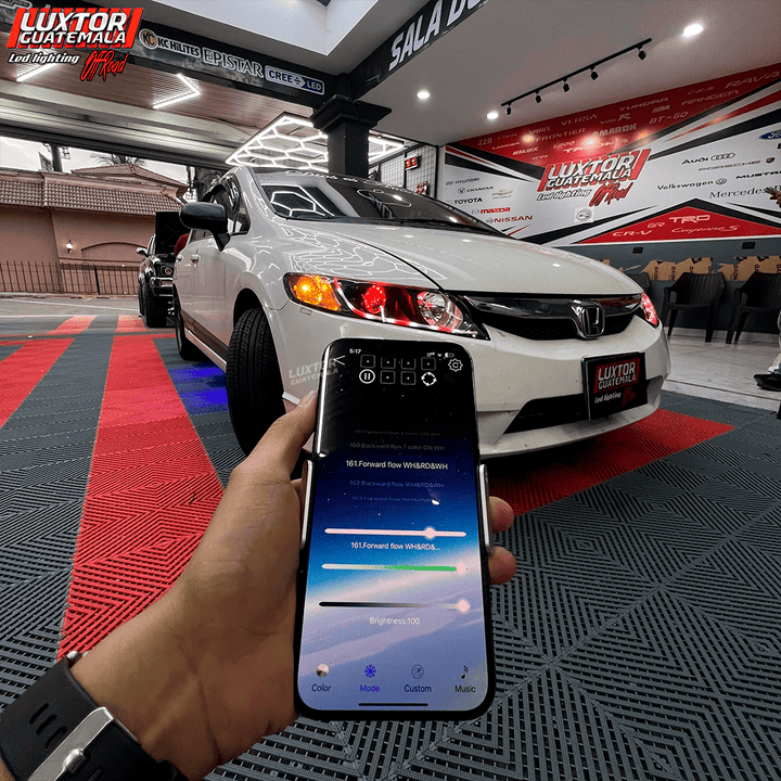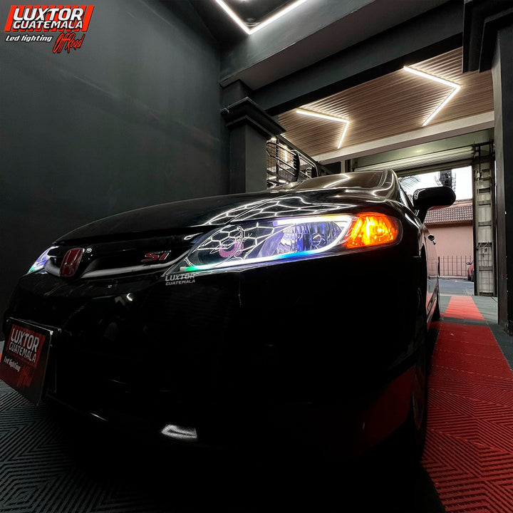 Modificación con piezas únicas en los silvines de honda civic, paneles led interactivos controlados por APP de celular, tira led RGB con función de pidevías y RGB.