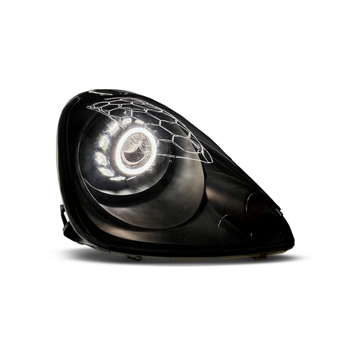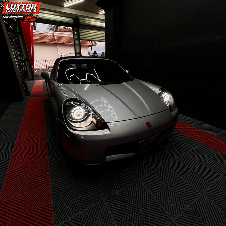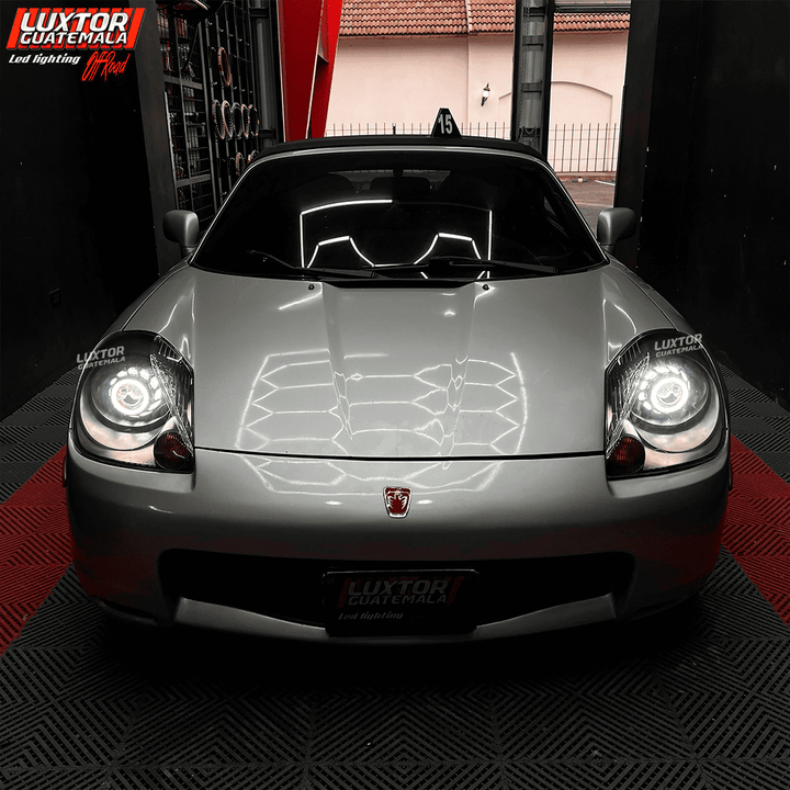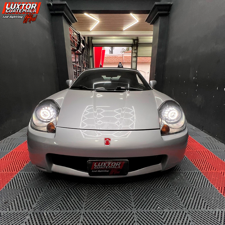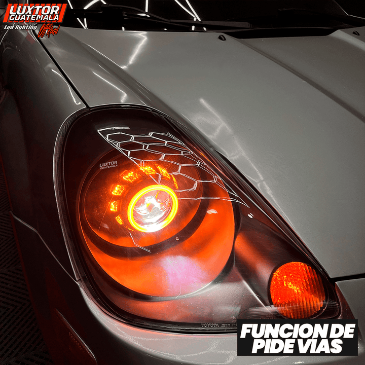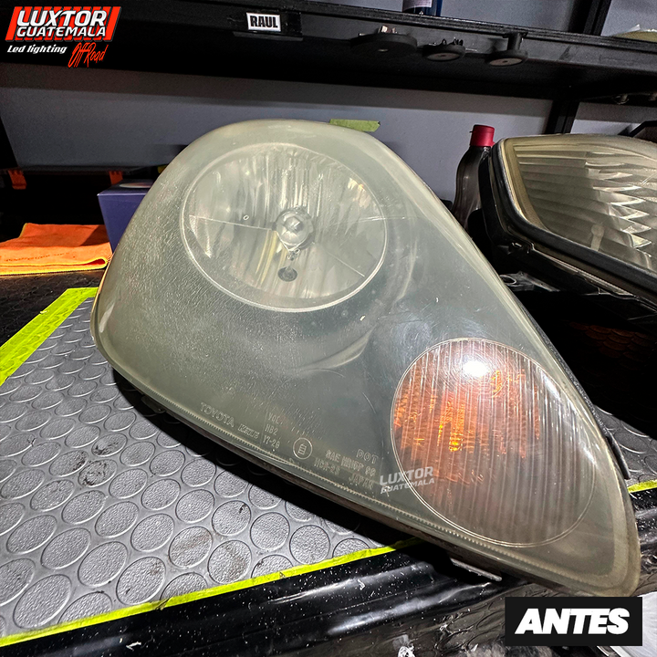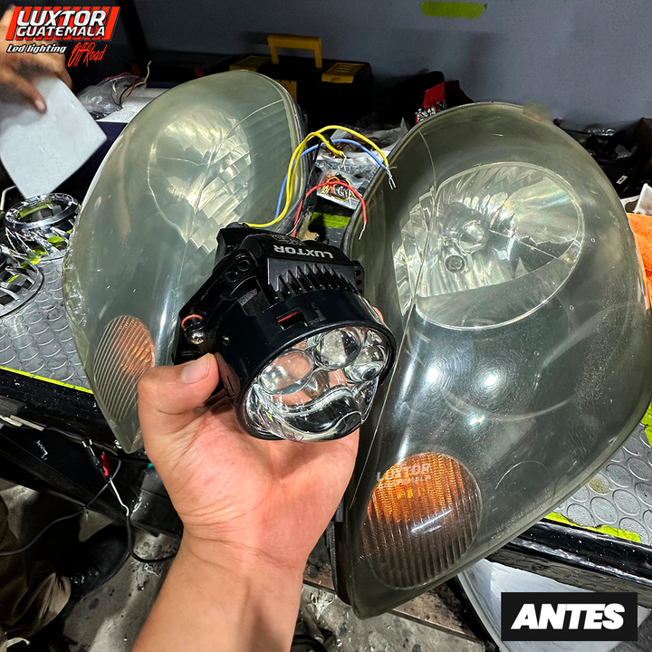 Mejorando la iluminación y apariencia de este vehículo con un par de proyectores triple lupa luxtor, un par de biseles tipo espiral con función de pidevías, además del tratamiento químico premium