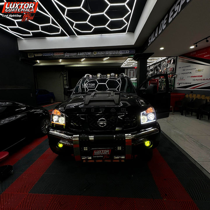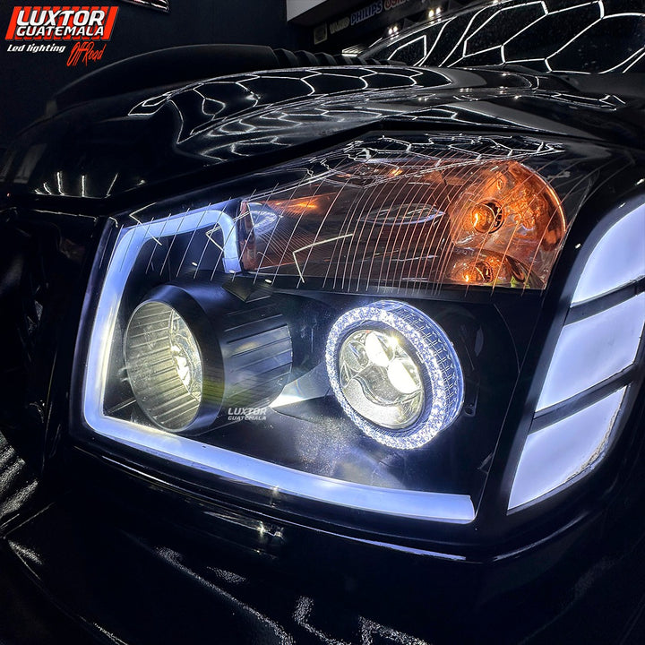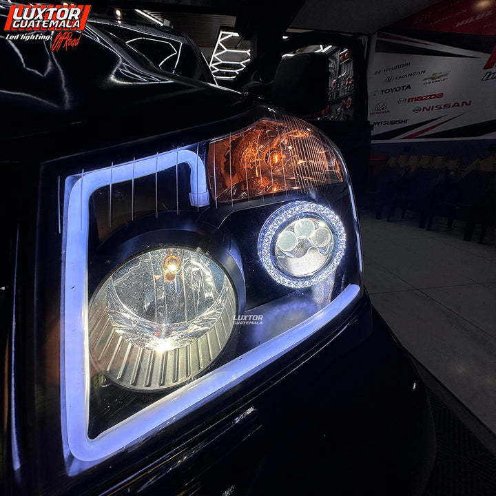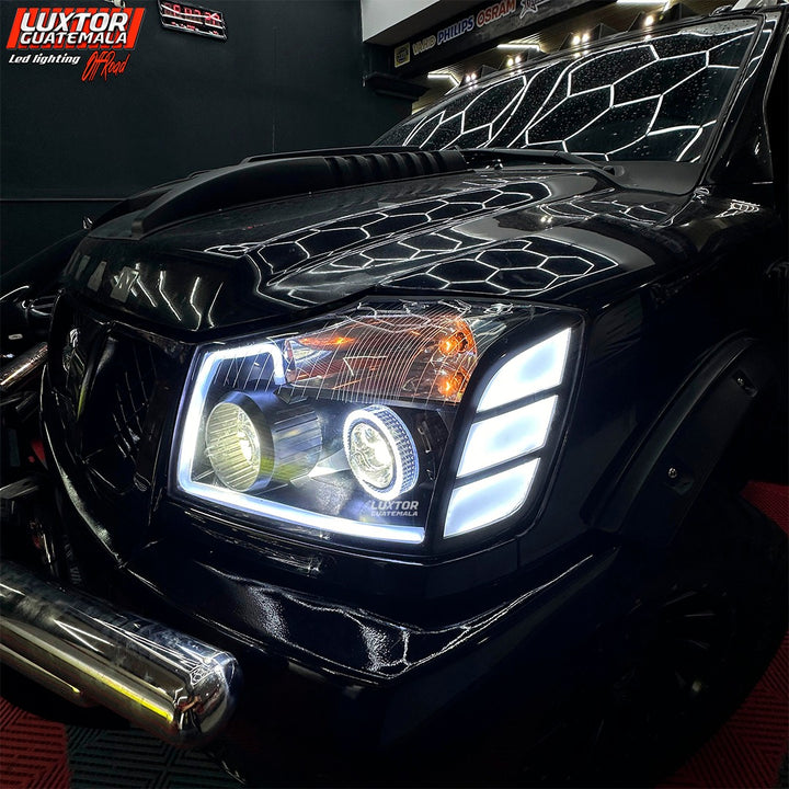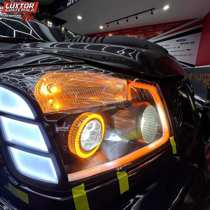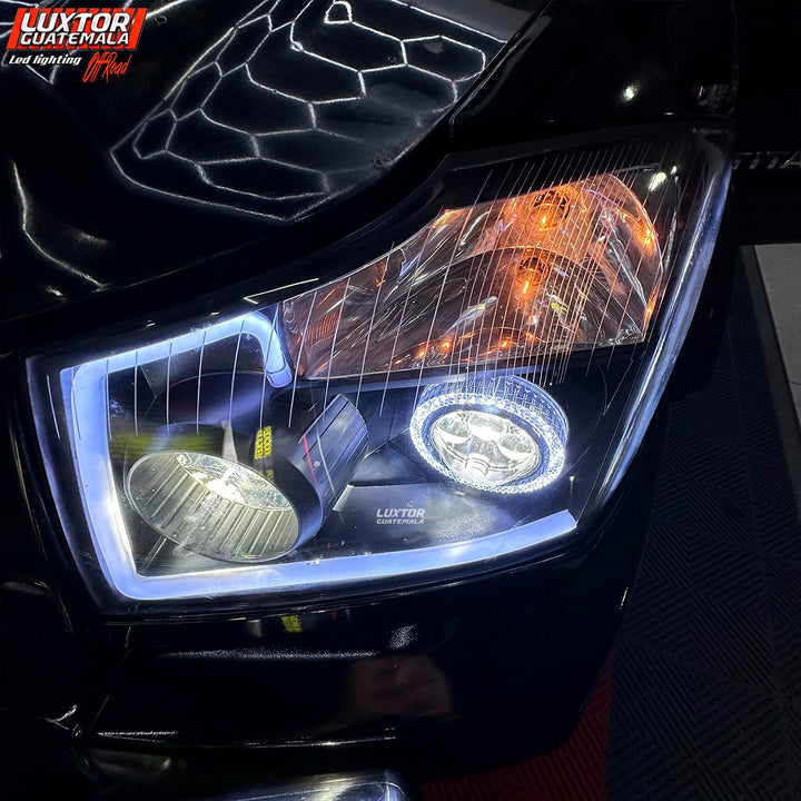 Con esta modificación mejoramos la iluminación de este gigante, con un par de proyectores triple lupa gama Luxtor, diseño personalizado en luz media, par de aureolas marca AES, tira led con función de luz media y pidevías, tratamiento químico premium además de un blackhousing.
