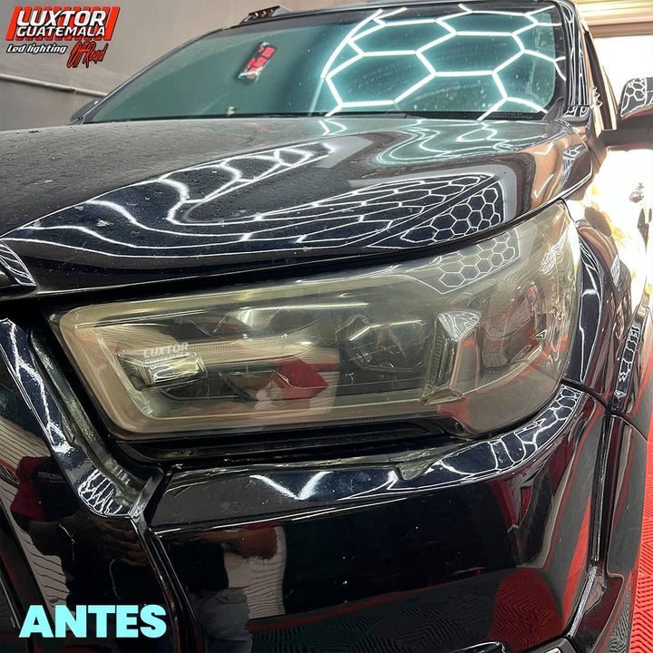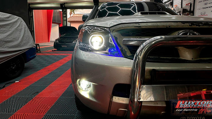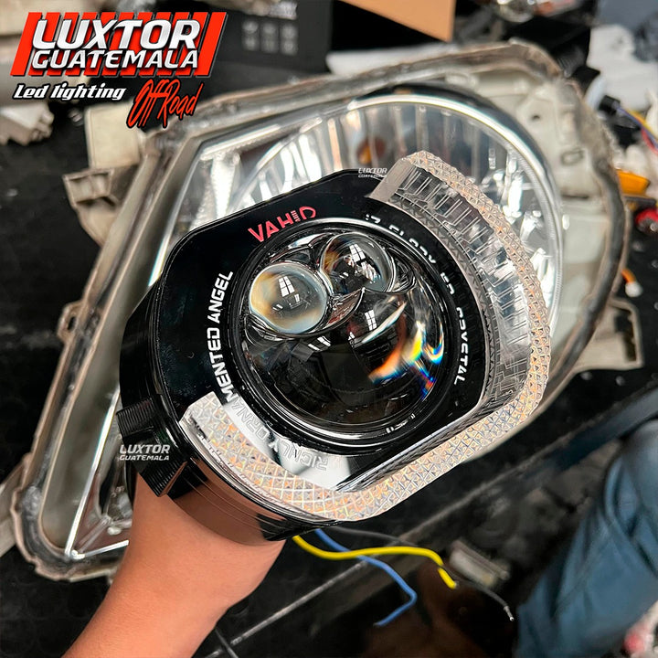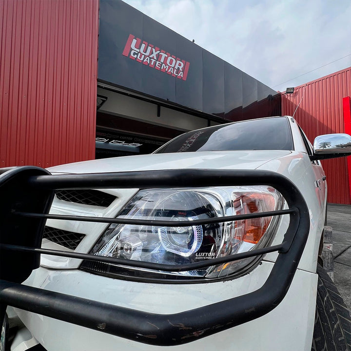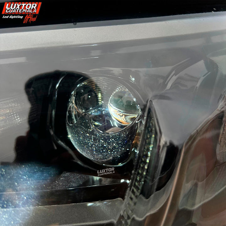 Adaptándole un par de proyectores doble lupa gama Luxtor además de un par de biseles Crystal i7 con función de luz de bienvenida, luz media y pide vías.