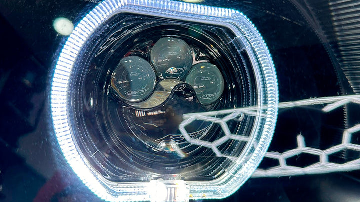 Con un par de biseles tipo BMW mejoramos la apariencia pero sobre todo la iluminación con un pár de nuestros poderosos proyectores triple lupa gama Luxtor.