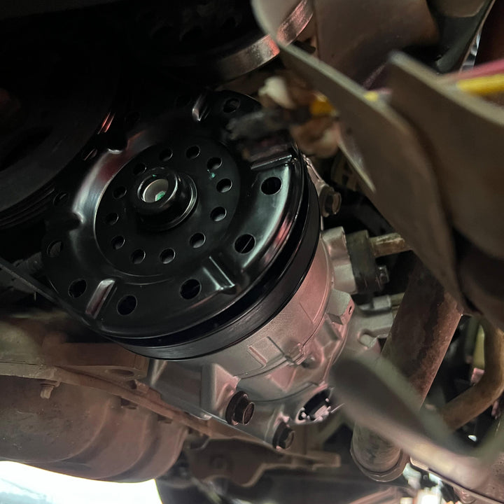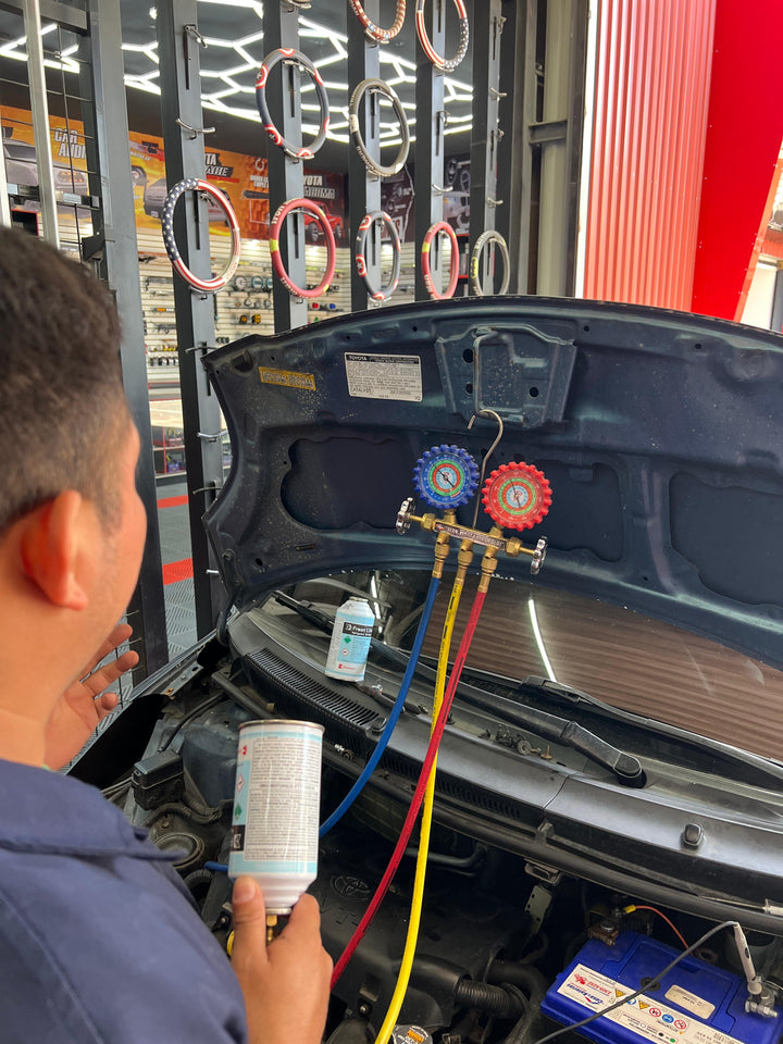 Con problemas en el sistema de aire acondicionado, remplazamos el compresor original por uno totalmente nuevo, ademas de remplazar tubería con filtraciones, cambio de O-ring y la válvula de expanción