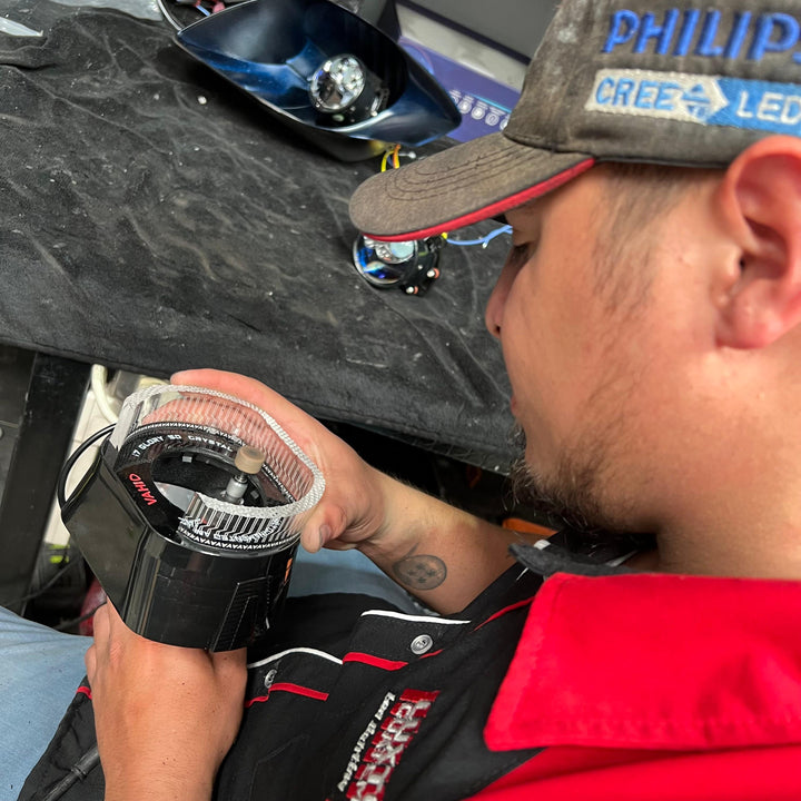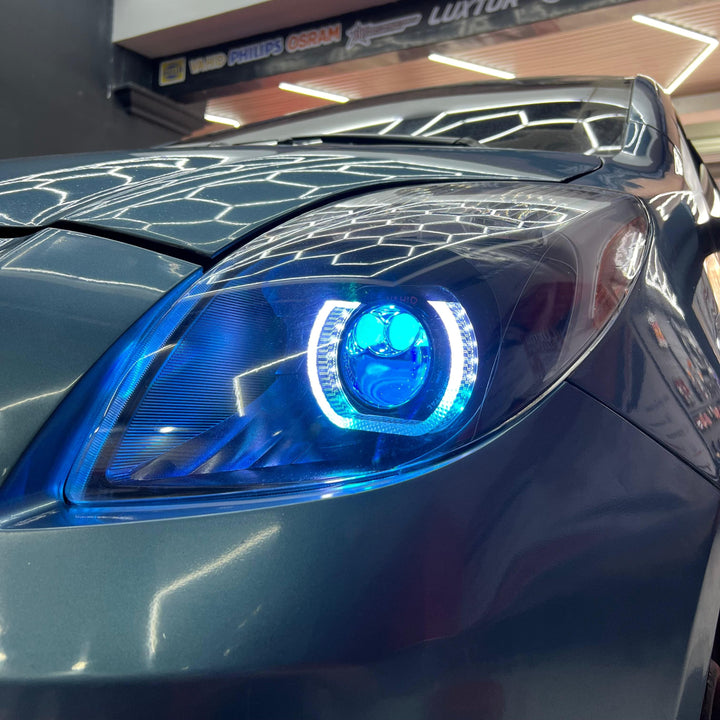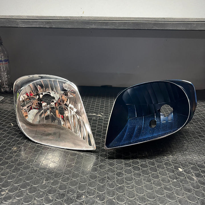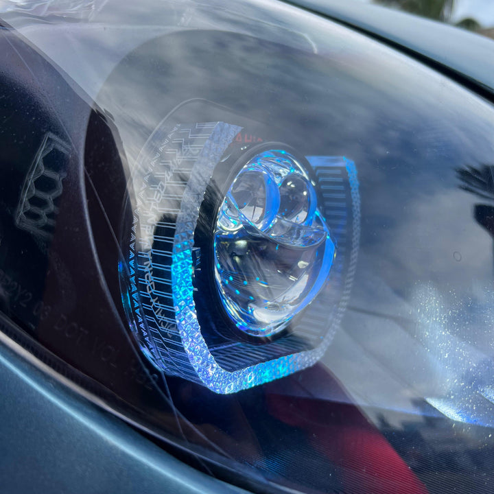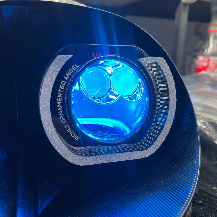 Modificación de silvines cambiándole totalmente la apariencia con un tratamiento químico premium en sus pantallas, blackhousing perlado azul en creomado de silvin y la adaptación de un par de biseles CRYSTAL I7 RGB de la marca VAHID los cuales se pueden controlar mediante una aplicación de celular, además de potenciar su iluminación con la adaptación de un par de proyectores doble lupa gama LUXTOR