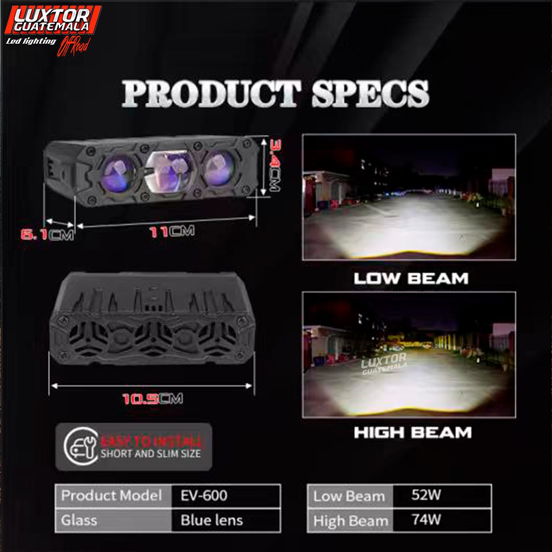 Potencia lumínica: 30,000 lúmenes reales que ofrecen un rendimiento superior en cualquier entorno, garantizando visibilidad total de noche o en condiciones extremas.
