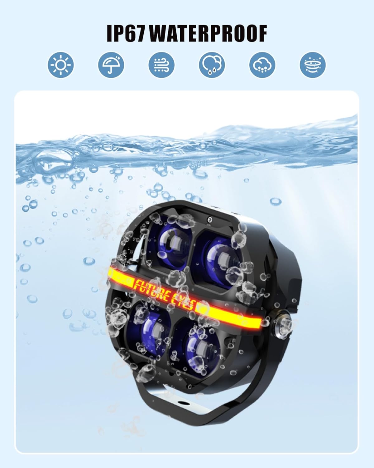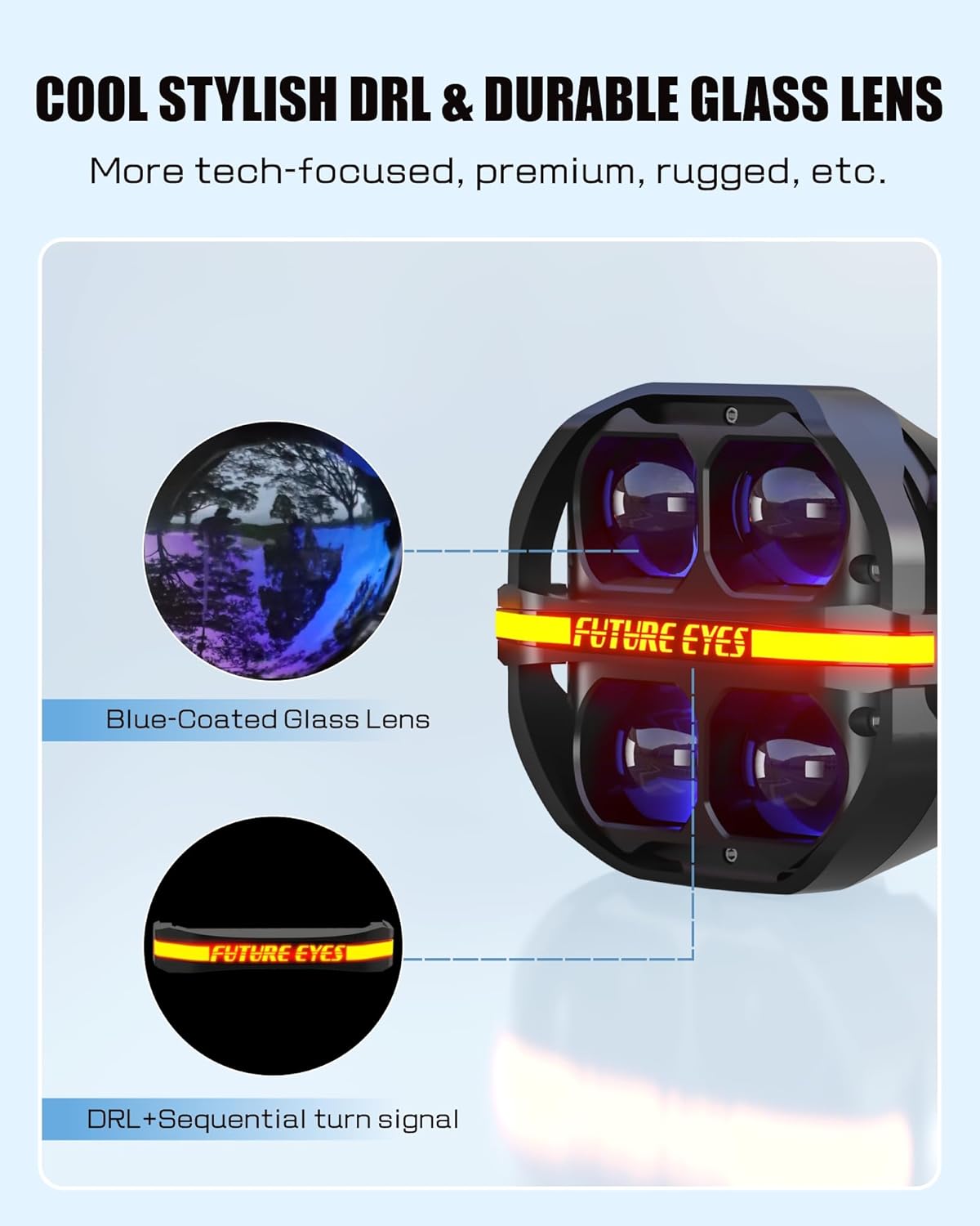 Estética futurista con el efecto de blue glass en sus 4 lupas, que diferencian al vehículo incluso apagadas.
